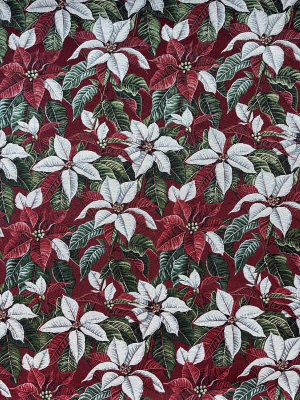 In deze kerst gobelin stof zit een lurex draad, waardoor de stof een glitter heeft. Leuk te gebruiken voor tafelkleden, tafellopers, kussens en andere kerst decoratie.